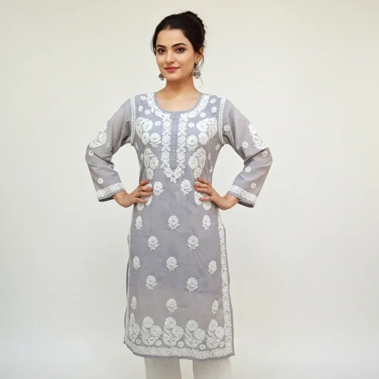 Chikankari Georgette Long Kurti Coral