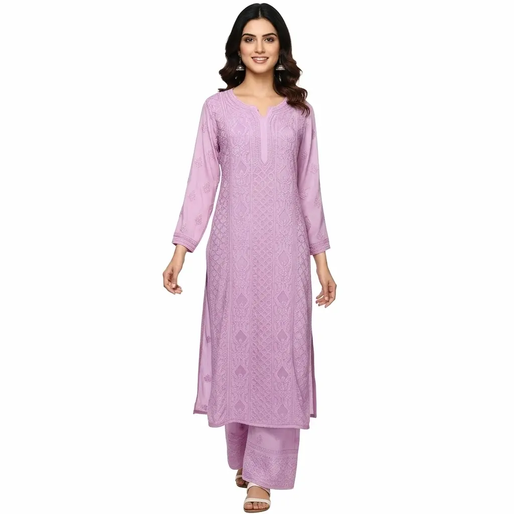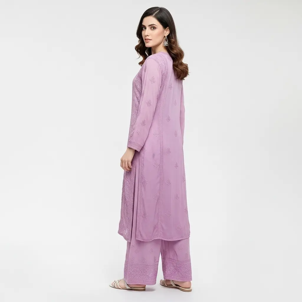 Chikankari Georgette Kurti Set Mauve
