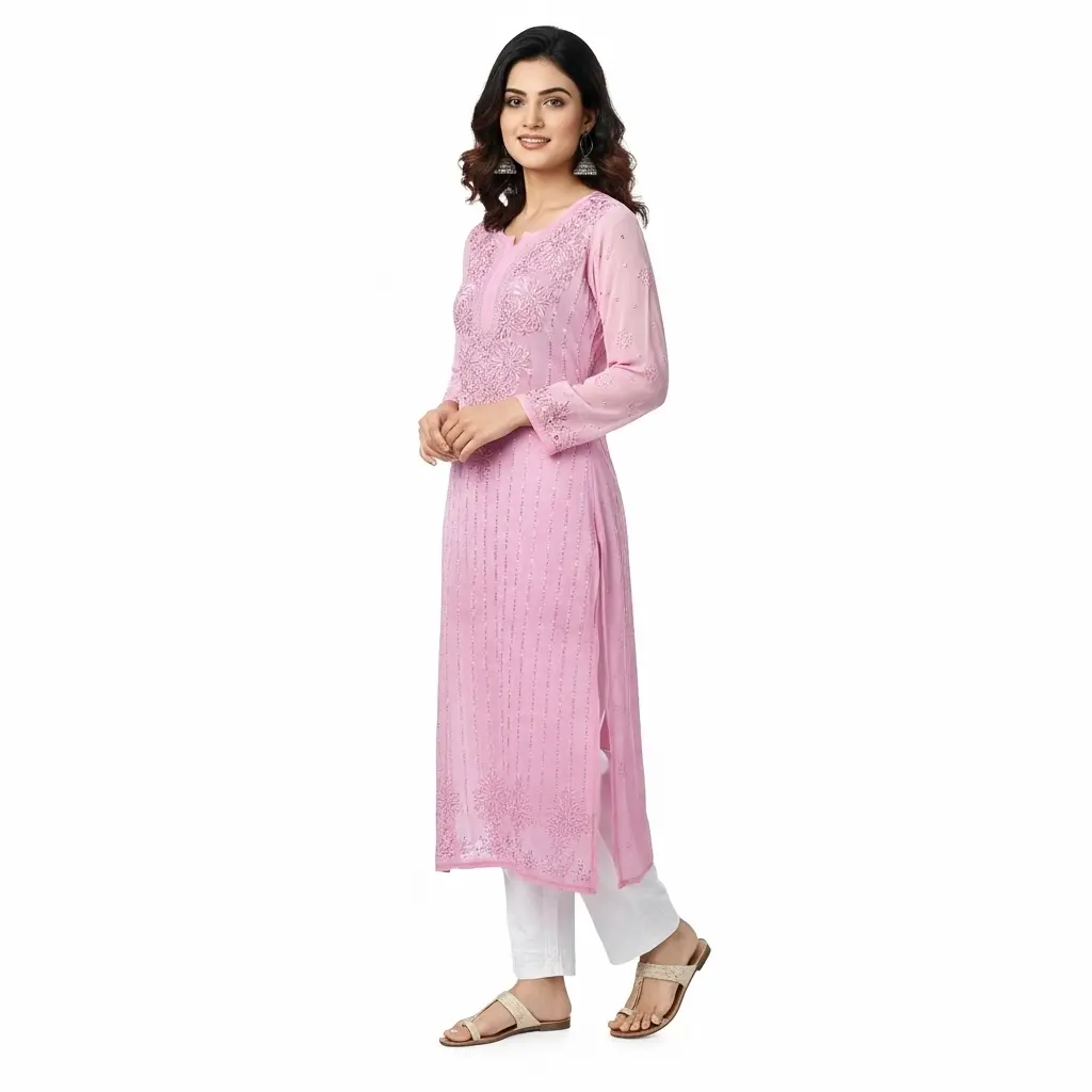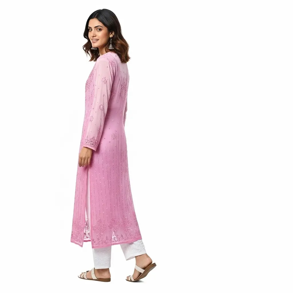 Chikankari Georgette Long Kurti Sweet Lilac
