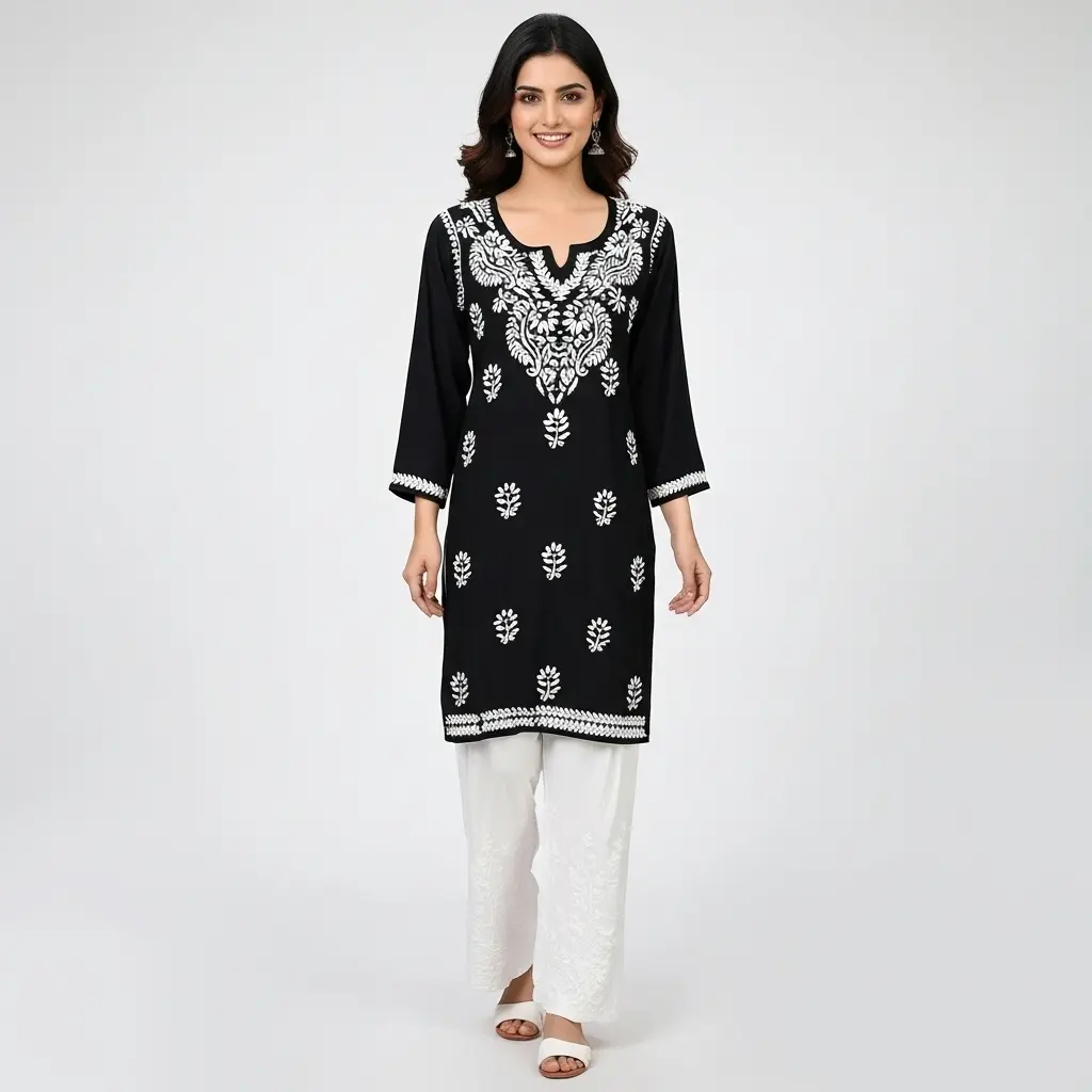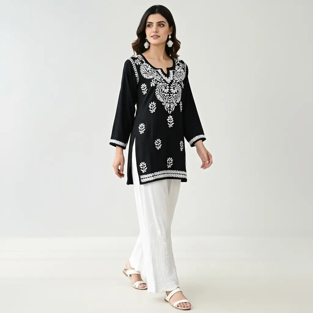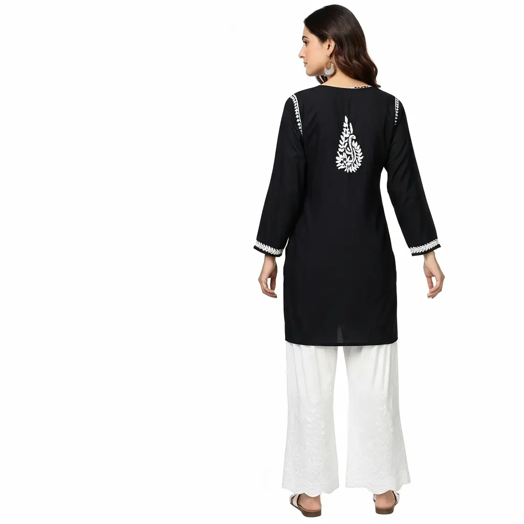 Chikankari Short Kurti Black